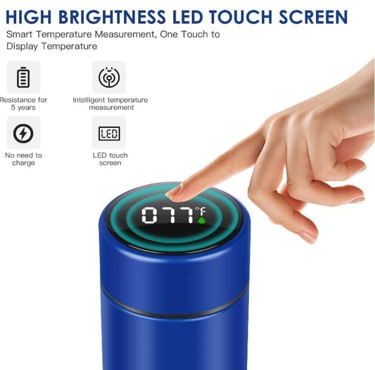 Smart LED Temperature Display Water Bottle | Double Wall Vacuum Insulated Stainless Steel Flask - 500ml (Blue)