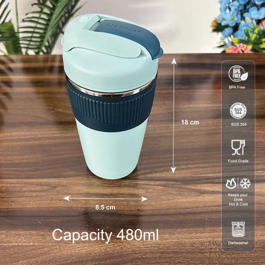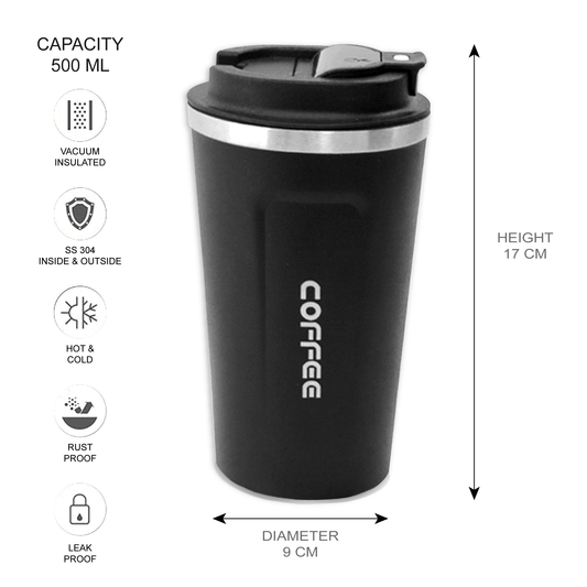Dual Sipper Double Wall Stainless Steel Insulated Coffee Cup - 500ml