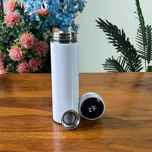 Smart LED Temperature Display Water Bottle | Double Wall Vacuum Insulated Stainless Steel Flask - 500ml (White)