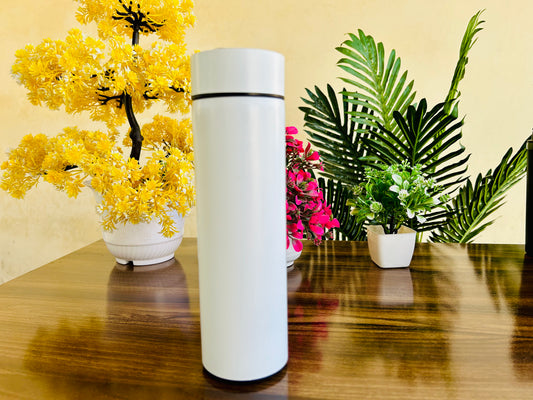 Stainless Steel Vacuum Water Bottle with Temperature Display - Silk White