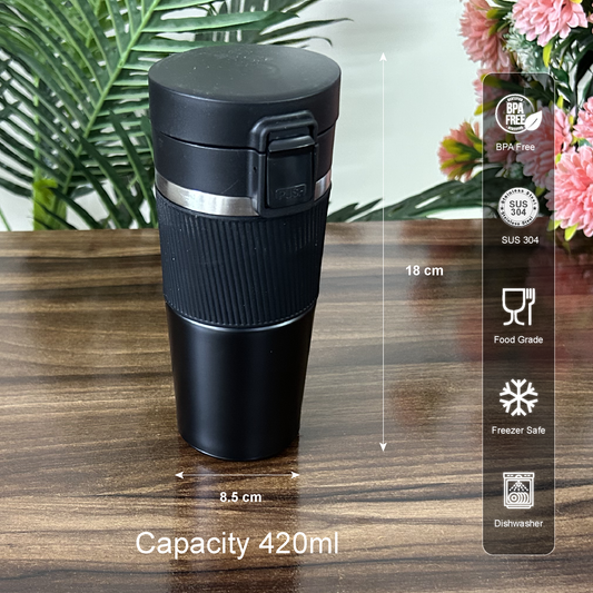 Vacuum Insulated Stainless Steel Coffee Mug with Rubber Grip | Hot and Cold Flask