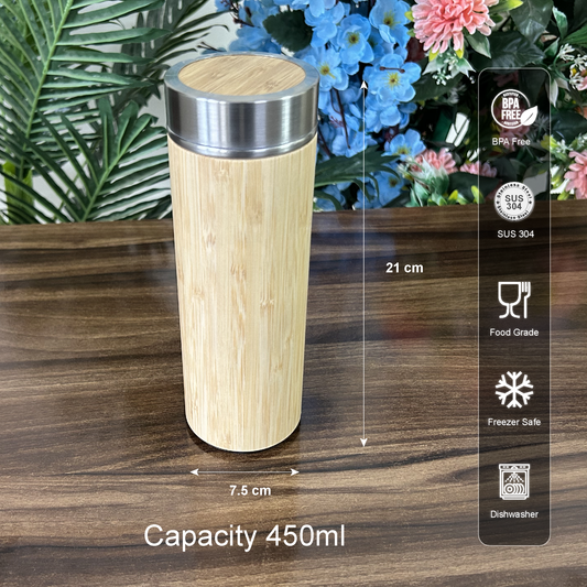 Wooden stainless steel insulated water/tea/Coffee bottle with tea stainer