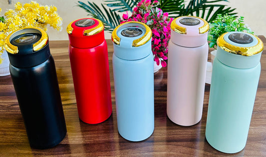 Stainless Steel Vacuum Water Bottle with Ring-shaped Handle and Temperature Display - 500ml