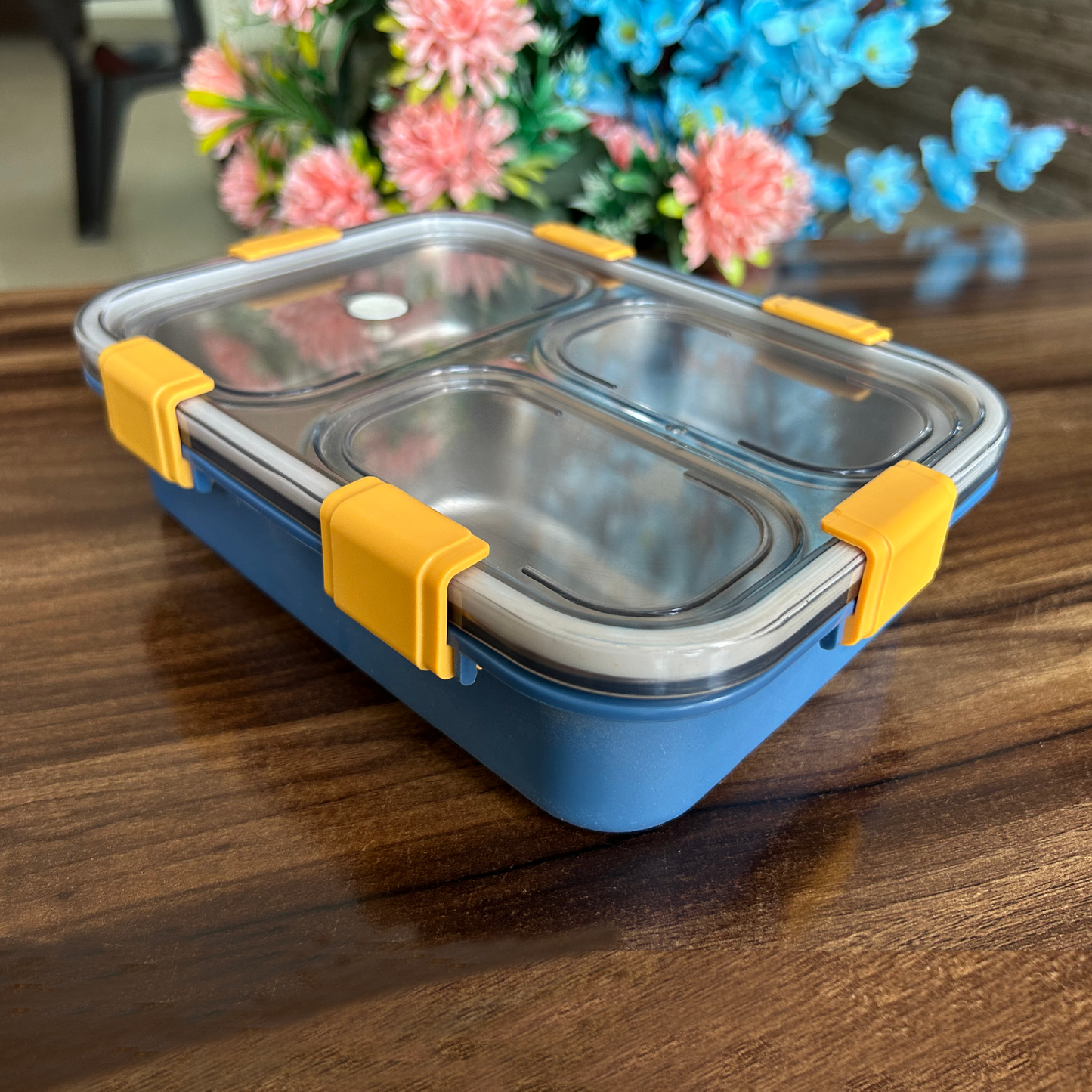 Breathable Button Design 3 Compartment Stainless Steel Bento Lunch Box